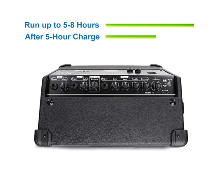 Pin lithium năng lượng tích hợp, Các nhạc sĩ ở góc phố không chỉ cần bộ khuếch đại dễ dàng mang theo từ nơi này sang nơi khác mà họ còn cần một cách để cấp nguồn cho bộ khuếch đại của mình khi không có sẵn ổ cắm điện. Sau khi sạc đầy, nó có thể được sử dụng lên đến 6-8 giờ. Những sửa đổi trên mạch làm giảm mức tiêu thụ năng lượng, đảm bảo thời gian chờ lâu.