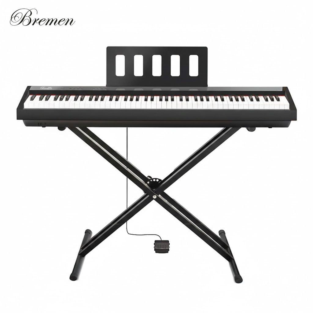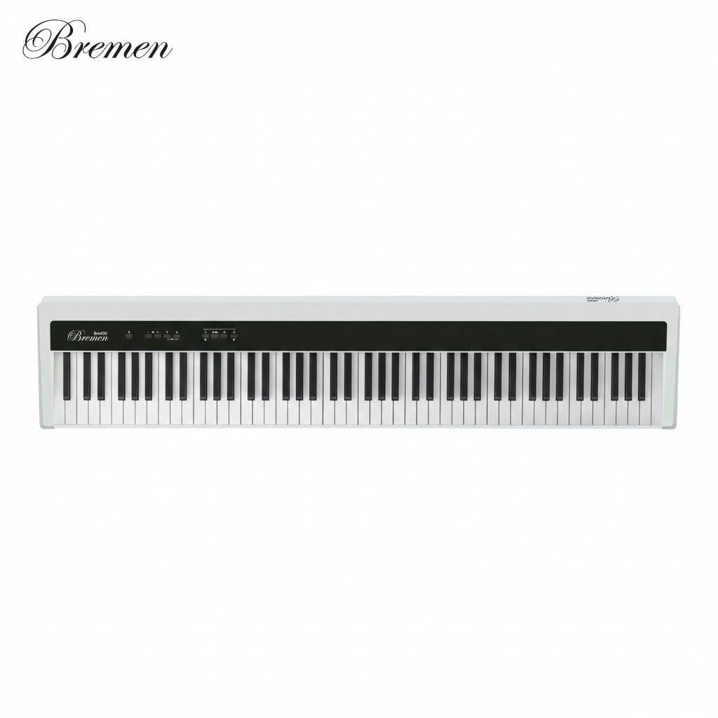 Piano Bremen BM400 là mẫu piano điện di động 88 phím mới, được thiết kế dành cho người học piano, giáo viên, người biểu diễn bán chuyên và gia đình hiện đại. Với bàn phím hammer action 88 phím, âm thanh lấy mẫu đại dương cầm, Bluetooth kép Audio & MIDI, cùng nguồn pin linh hoạt, BM400 mang đến trải nghiệm chơi đàn tiện lợi nhưng vẫn giữ được cảm giác biểu diễn chân thực.