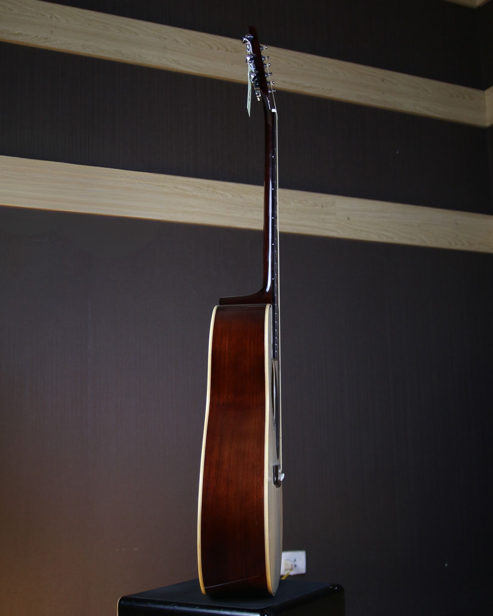 Dáng D của J150-D với thùng đàn to hơn, mang lại âm thanh mạnh mẽ hơn, trầm và ấm hơn.