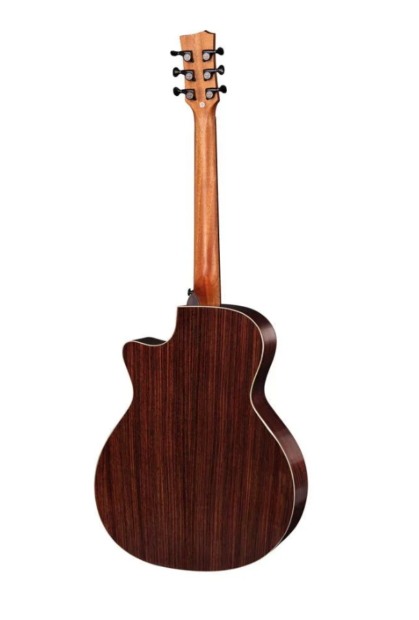 Sự kết hợp giữa mặt trước bằng gỗ Solid Sitka Spruce, mặt lưng và hông bằng gỗ Rosewood tạo ra âm thanh mạnh mẽ, cân bằng với âm trầm chặt chẽ, tập trung và âm trung và âm cao sắc nét.