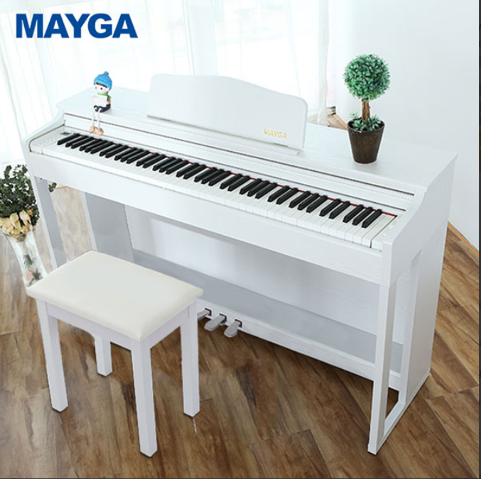 - Tặng bộ phụ kiện : Ghế piano, khăn phủ phím, giáo trình piano online, tai nghe chính hãng Mayga, dây cáp kết nối.