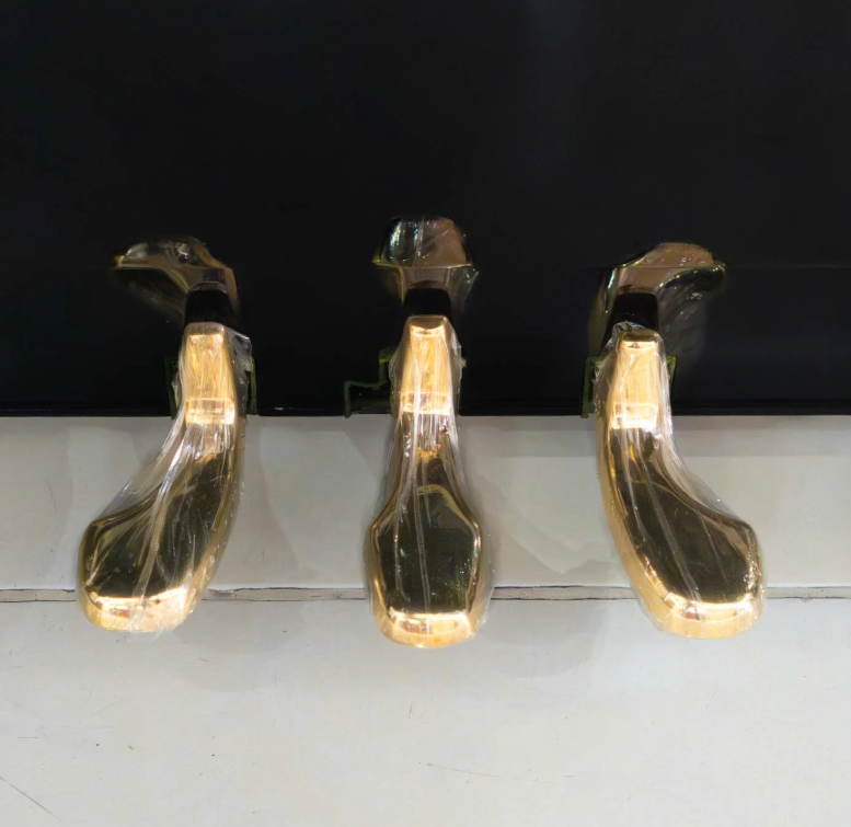 Chất liệu của bộ Pedals được đúc từ hợp kim đồng nên rất chắc chắn và màu vàng sáng bóng tạo nên vẻ sang trọng hơn cho cây đàn Piano Yamaha U1F.