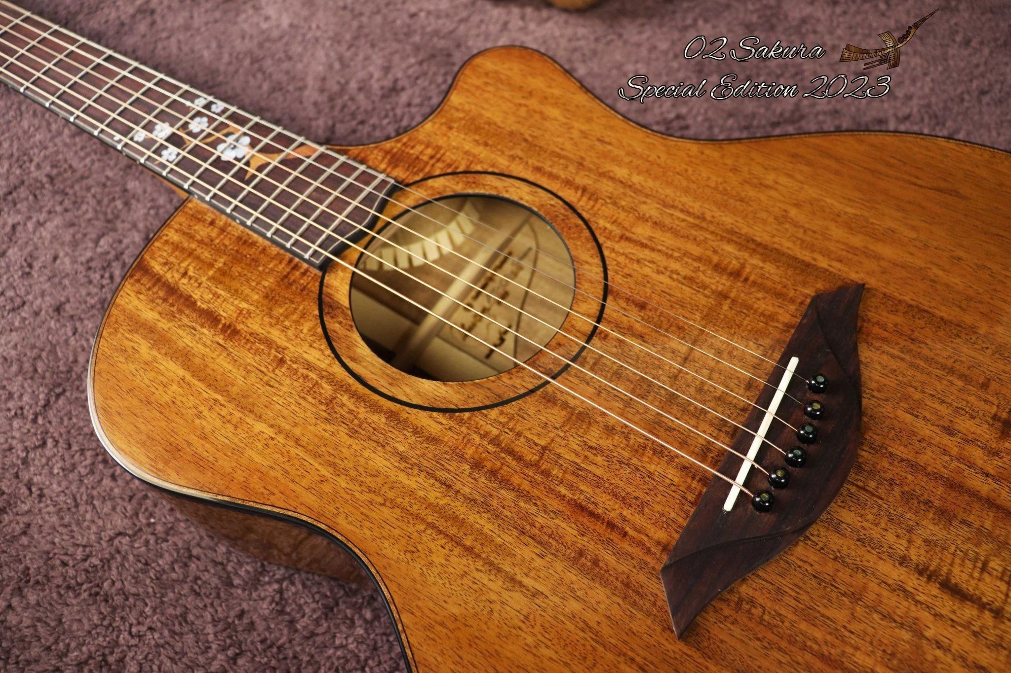 Thuận Guitar AT - 02 CX SAKURA SPECIAL 2023 Cấu hình:- Body shape: Grand Auditorium with Cutaway- Bevels: Arm Rest- Top: Solid Highly Flame Koa Phu Quoc- Back and Sides: Solid Highly Flame Koa Phu...