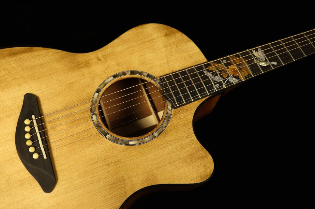 Cấu Hình Thuận Guitar AT-04CX HUMMINGBIRD - Body shape: Grand Auditorium with cutaway- Bracing Parttern: Slotted X bracing- Nut Width: 43mm- Scale Length: 645mm- Bevels: Arm Rest- Top: Solid Sitka Spruce 3A-...