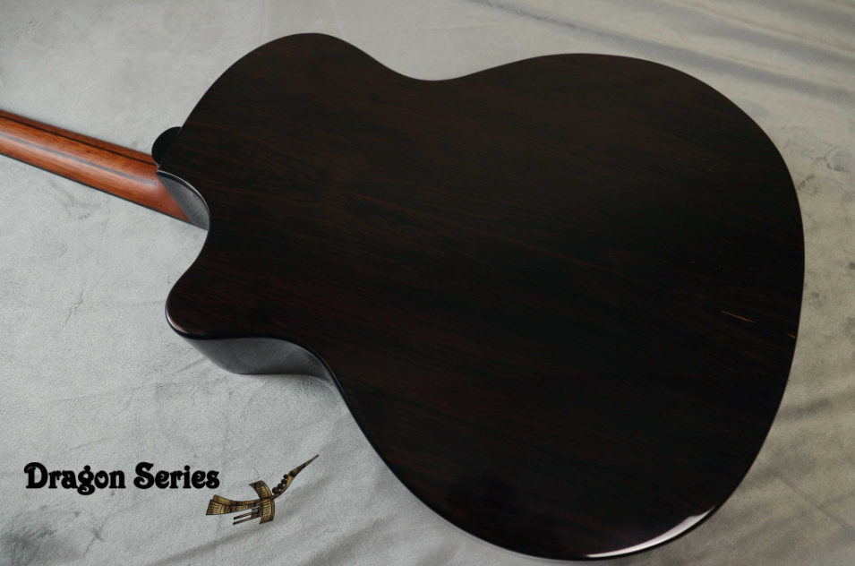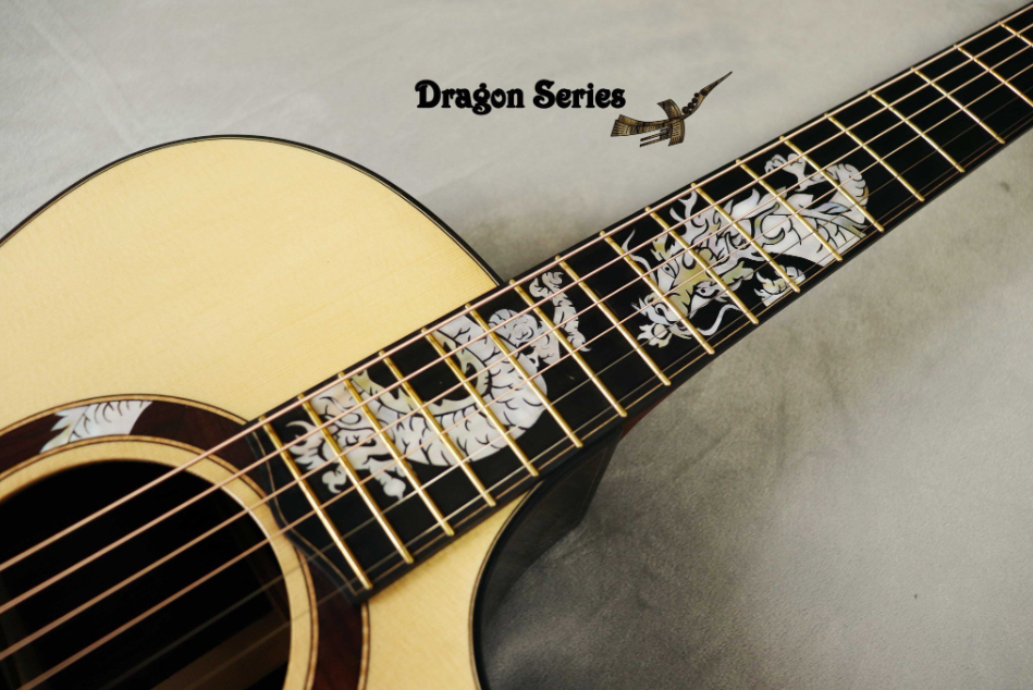 Thuận Guitar Dragon Series - A Cấu Hình- Body shape: Grand Auditorium with cutaway- Bevels: Arm Rest- Top: High Grade Engelmann Spruce- Back and Sides: High Grade Macassar Ebony- Fingerboard: Ebony-...