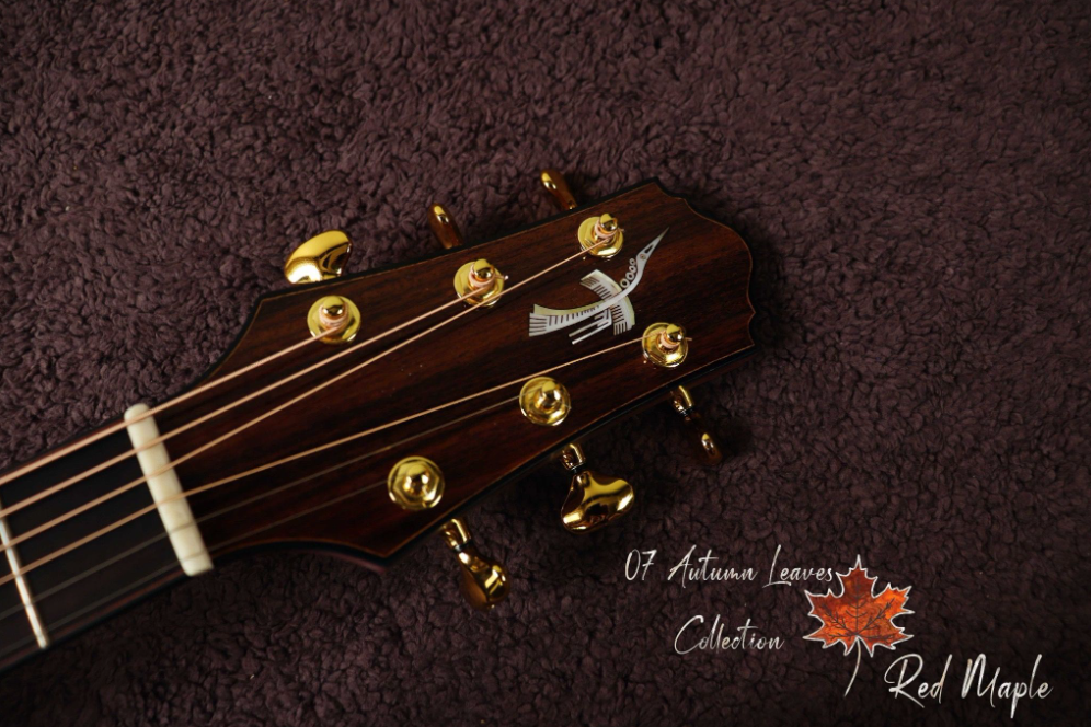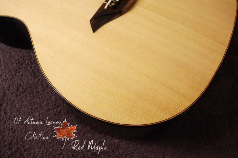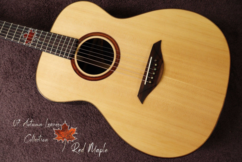 Thuận Guitar OT-07 RED MAPLE LEAF Cấu Hình- Body shape: OM- Bevels: None- Top: Solid 3A Sitka Spruce - Back and Sides: Solid Selected Macassar Ebony- Fingerboard: Indian Rosewood- Bridge: Indian Rosewood-...